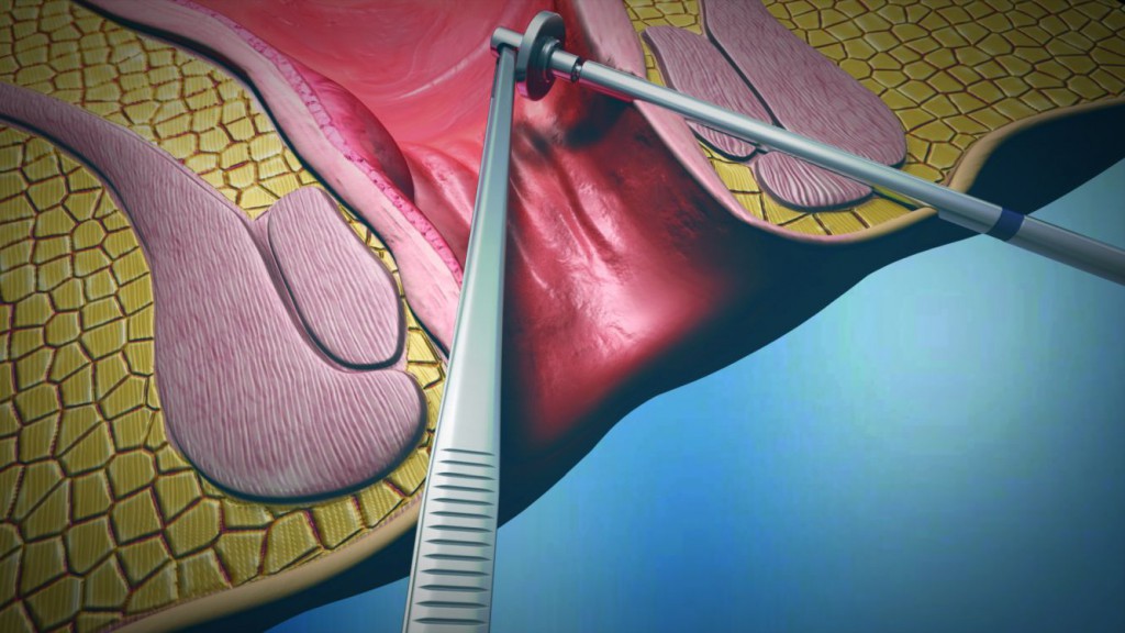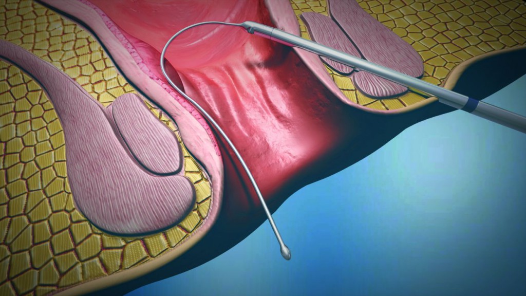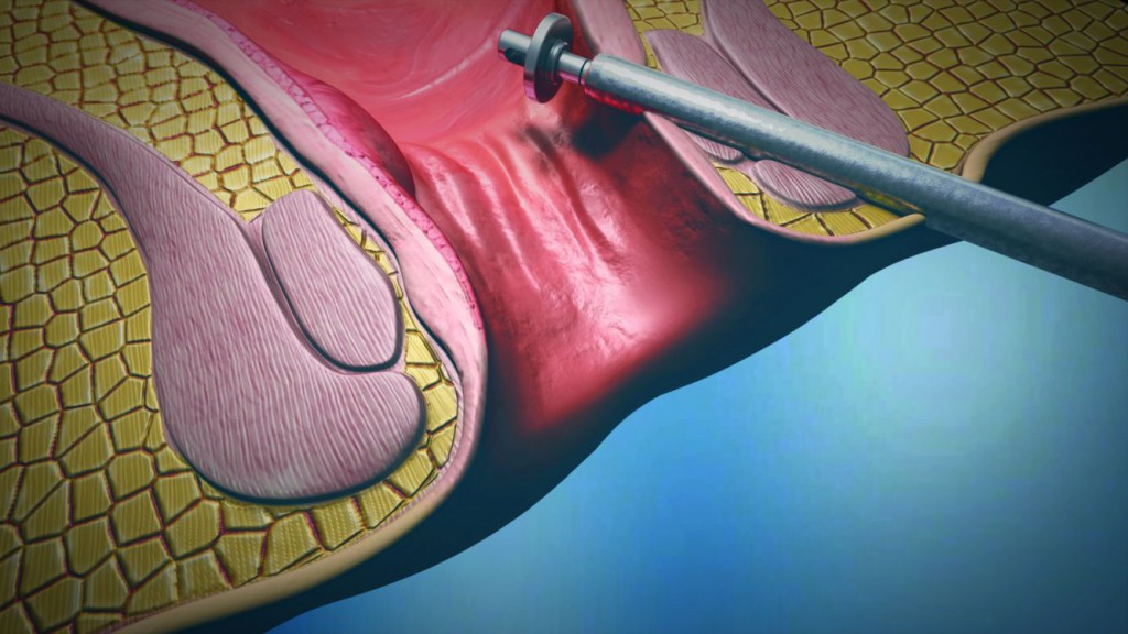 4- Remove the base plate, and pull out the guide and circular blade from the anal fistula.
